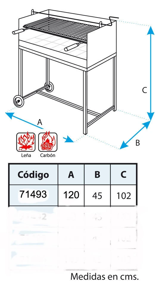 – Combustible recomendado: Leña, Carbón y Briquetas.