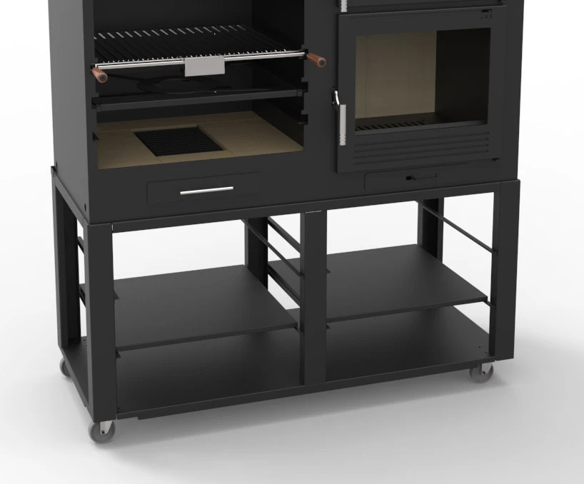 – Parrilla de cocción de Acero Inoxidable tipo Argentina (con varillas en forma de V) y recoge-grasas.