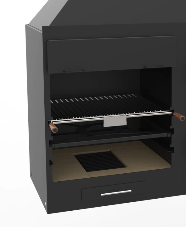 – Parrilla de cocción de Acero Inoxidable tipo Argentina (con varillas en forma de V) y recoge-grasas.