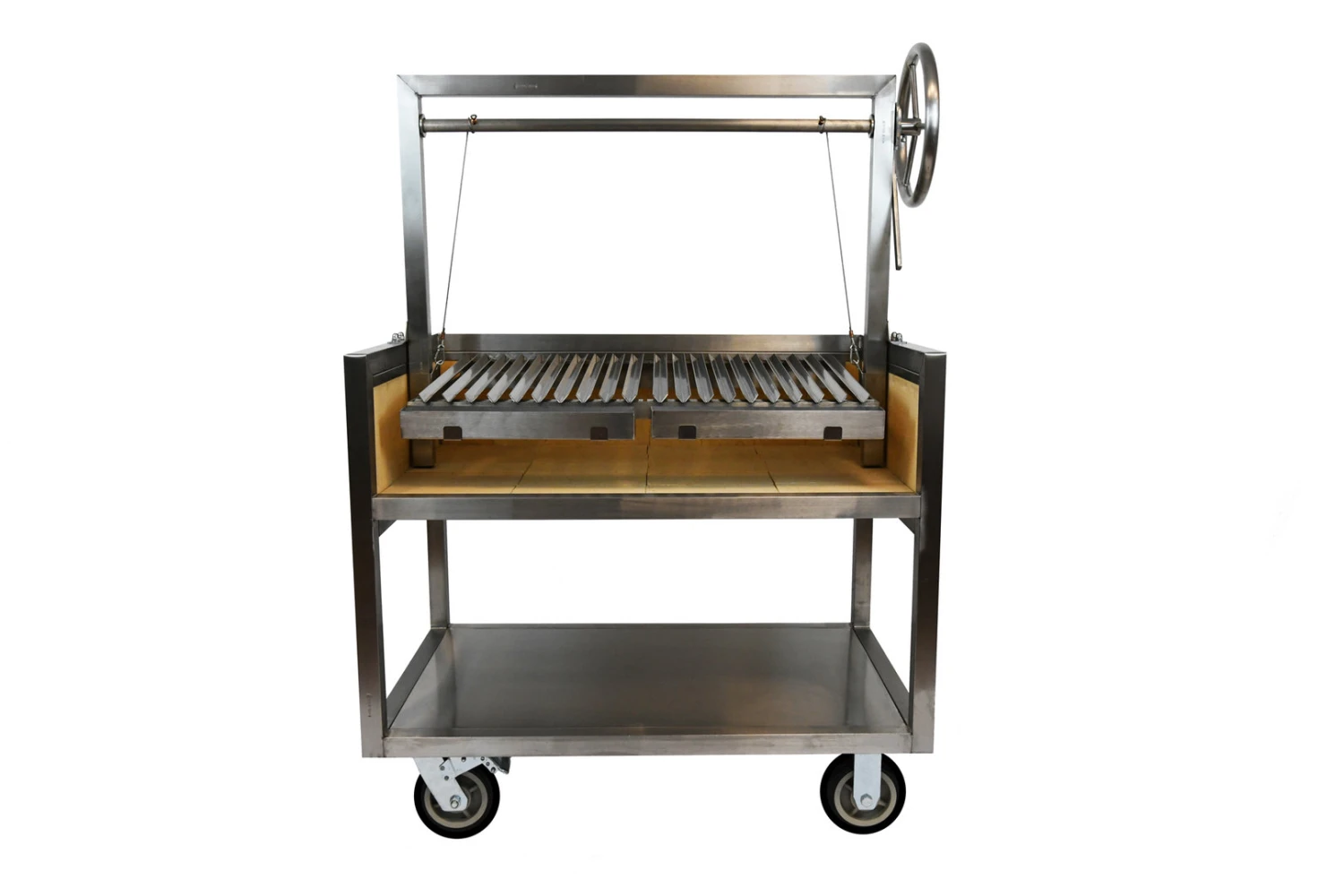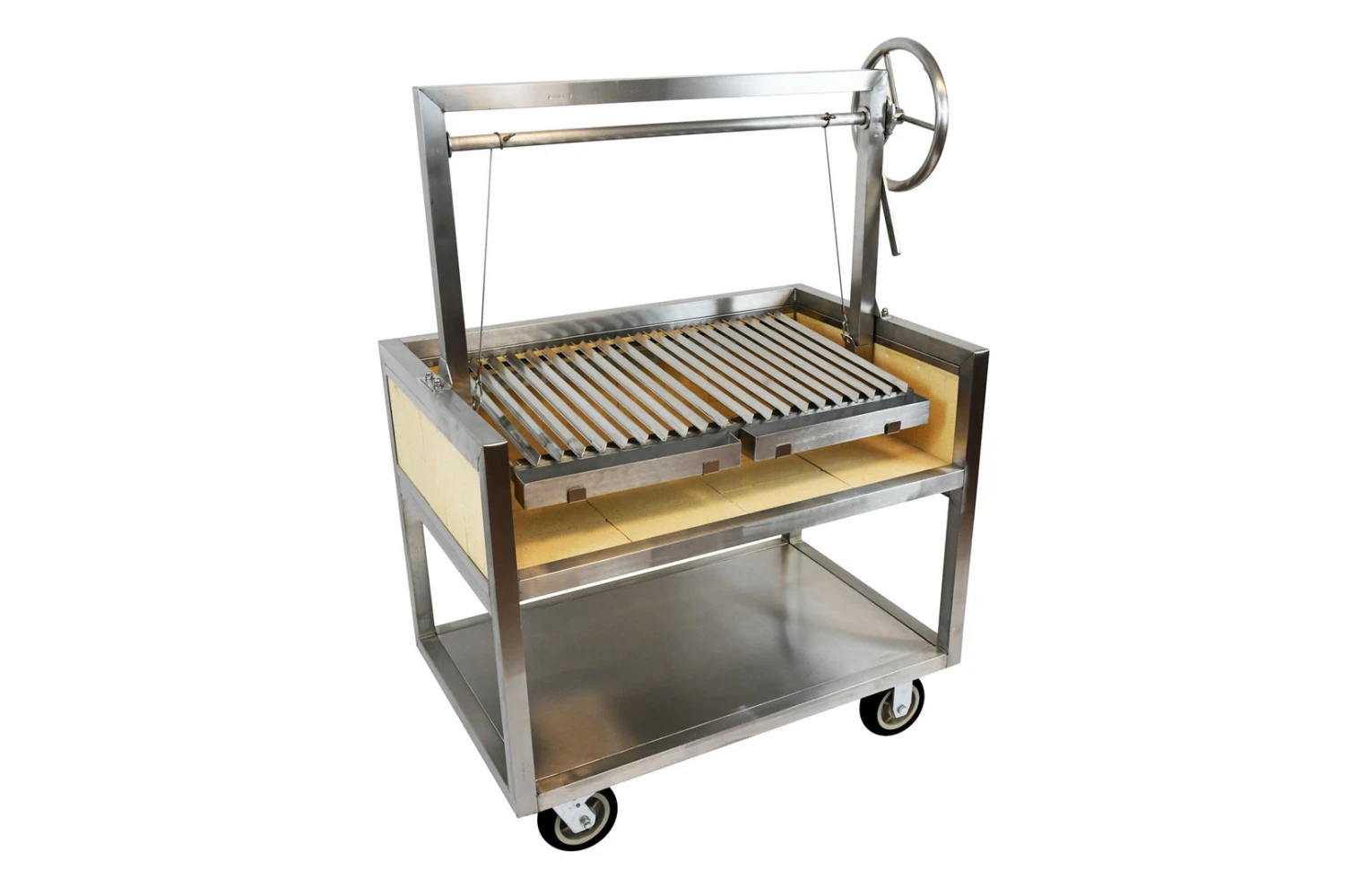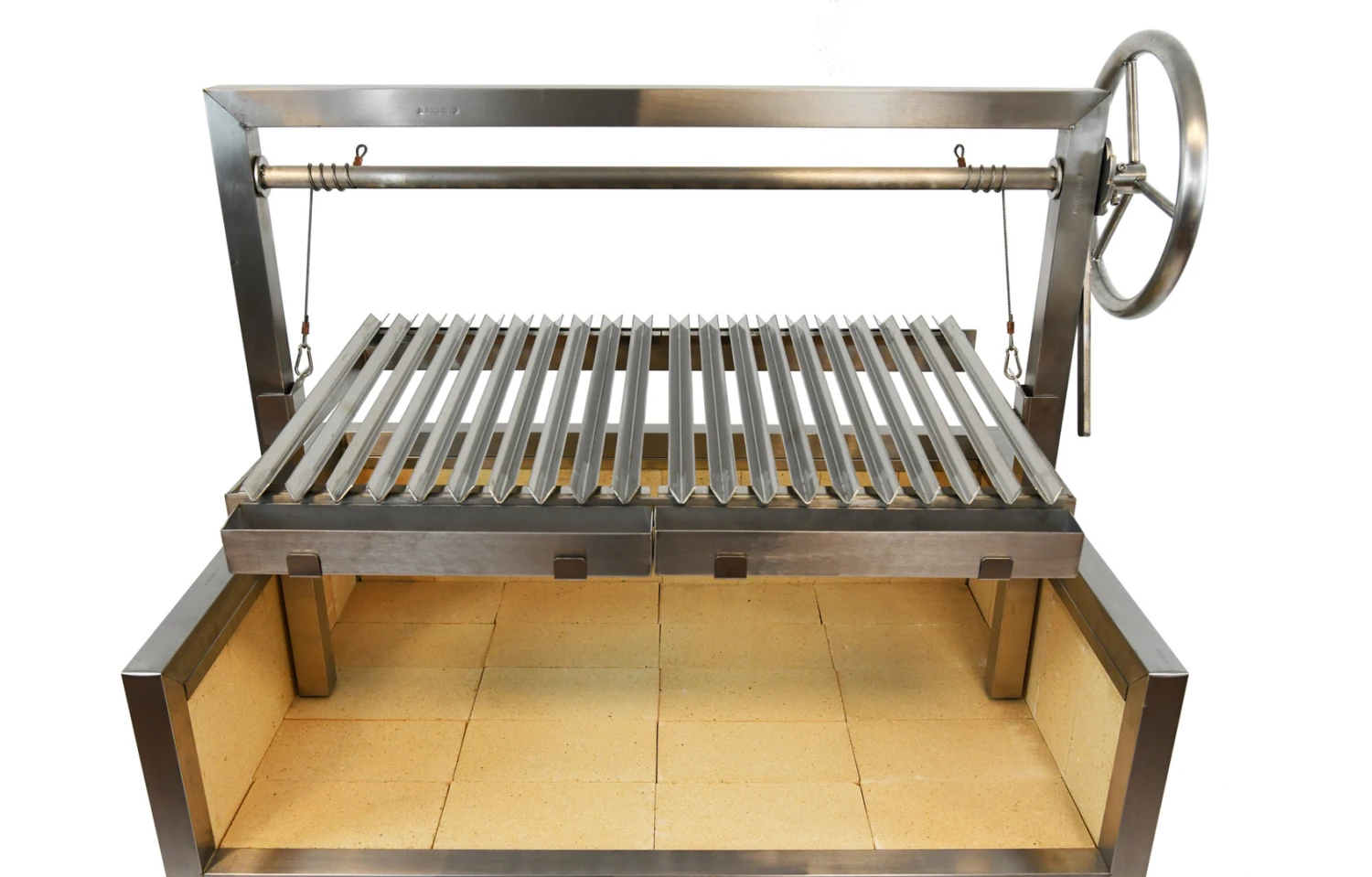 El interior de la Barbacoa Argentina está incrustado con ladrillos refractarios de alta calidad. Los ladrillos producen una excelente radiación de calor para una cocción continua. También evitan que el cuerpo de acero se degrade por el calor extremo de la llama desnuda.