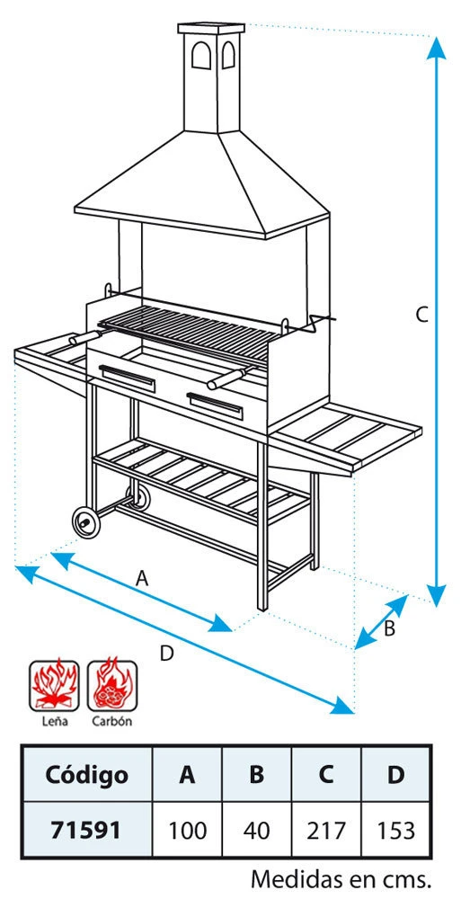 – Combustible recomendado: Leña, Carbón y Briquetas.