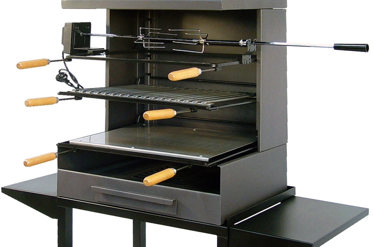 Las barbacoas de Imex El Zorro han sido completamente rediseñadas. Los cambios más relevantes a destacar son: Elegantes ruedas 4×4 para todo tipo de superficie, estantes laterales reforzados de metal, cajón recoge cenizas reforzado, parrilla del hogar de hierro fundido, cuba fabricada en acero de alta resistencia lo que nos permite poder usar leña sin problema.