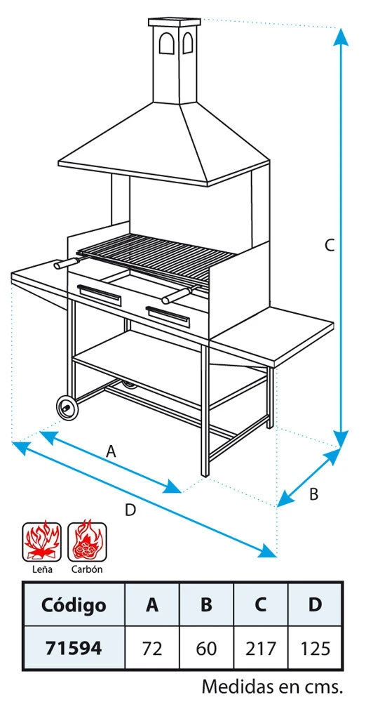 – Medida de la parrilla: 68 x 60 cm.