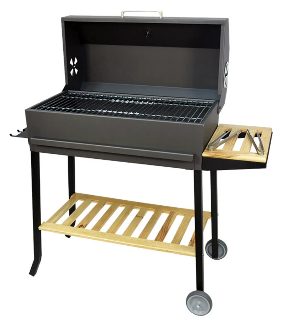 Las barbacoas de Imex El Zorro han sido completamente rediseñadas. Los cambios más relevantes a destacar son: Elegantes ruedas 4×4 para todo tipo de superficie, estante lateral reforzado de madera, tapa función horno con termómetro, cajón recoge cenizas reforzado, parrilla de hierro fundido, cuba fabricada en acero de alta resistencia lo que nos permite poder usar leña sin problema.
