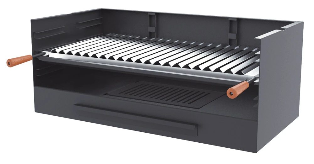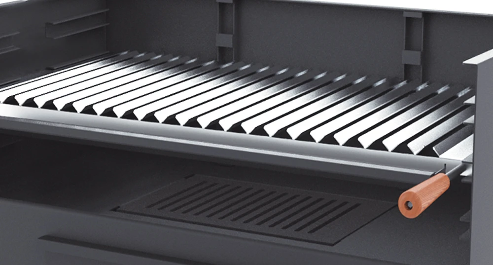 – Parrilla de Acero Inoxidable regulable a 3 alturas.