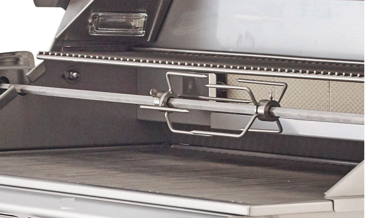 La barbacoa de Gas Bull Brahma para Encastrar es súper amplio, con casi un metro de parrilla a lo ancho y medio a lo fondo. Dispone de rustidor y motor eléctrico de Acero Inoxidable junto con su quemador trasero de infrarrojos. La construcción de la barbacoa está hecha en chapa de 2 mm. de Acero Inoxidable de grado 304.