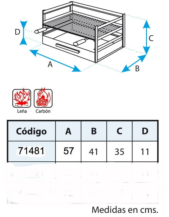 – Medida de la parrilla: 54 x 41 cm.