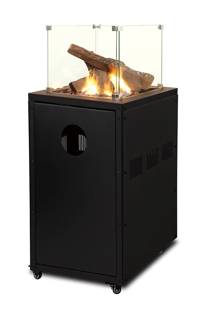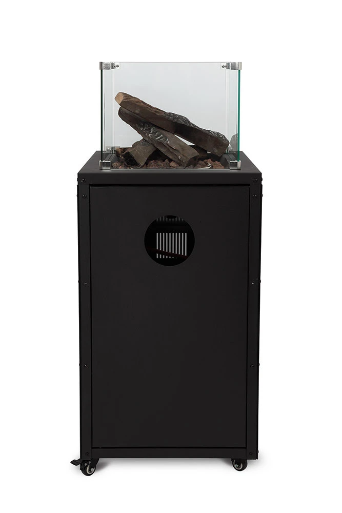La estufa Alesund es un calentador de terraza móvil que trabaja con gas butano y propano, combinando el fuego visible con el calor que desprende este. Gracias a su llama alimentada por los troncos cerámicos, el calor circula en el interior y se exterioriza por los cuatro lados de la parte superior. Además gracias al calentamiento del cristal protector, también emite calor infrarrojo a corta distancia.
