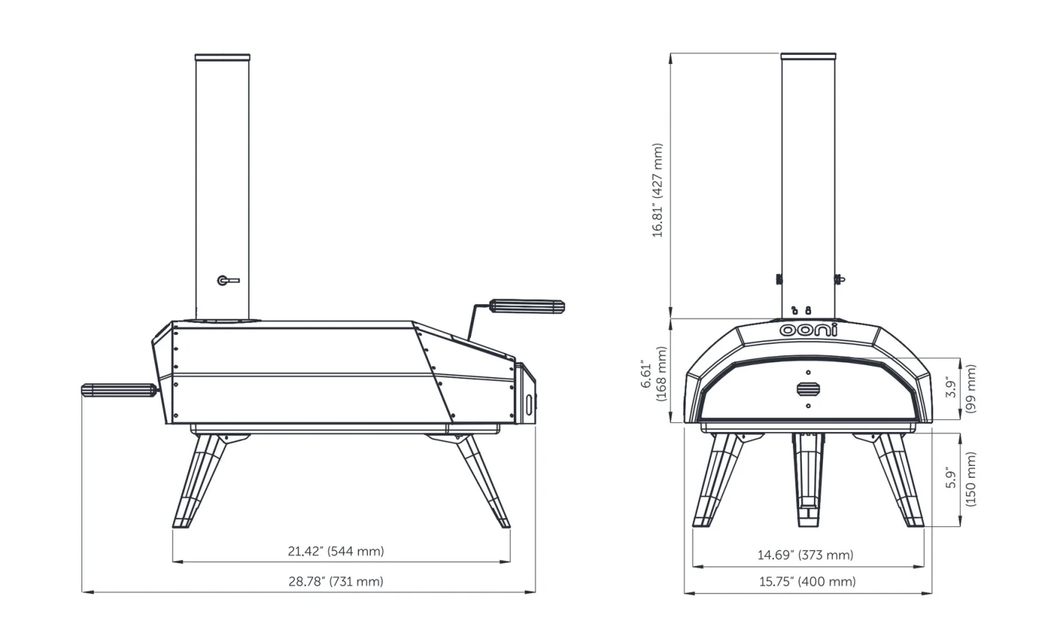 – Ooni Karu 12 se alimenta con troncos de madera del tamaño de una astilla / troncos de madera, carbón vegetal o el quemador de gas disponible por separado.