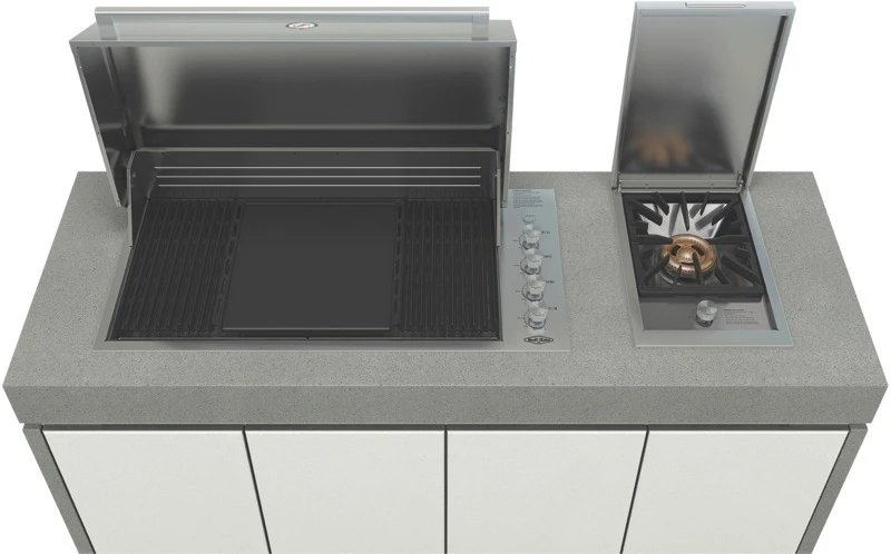Diseñadas para perdurar al aire libre. Nuestras cocinas al aire libre con puertas duraderas de madera contrachapada de grado marino, cuidadosamente construidas, garantizan que su cocina sea resistente al agua.