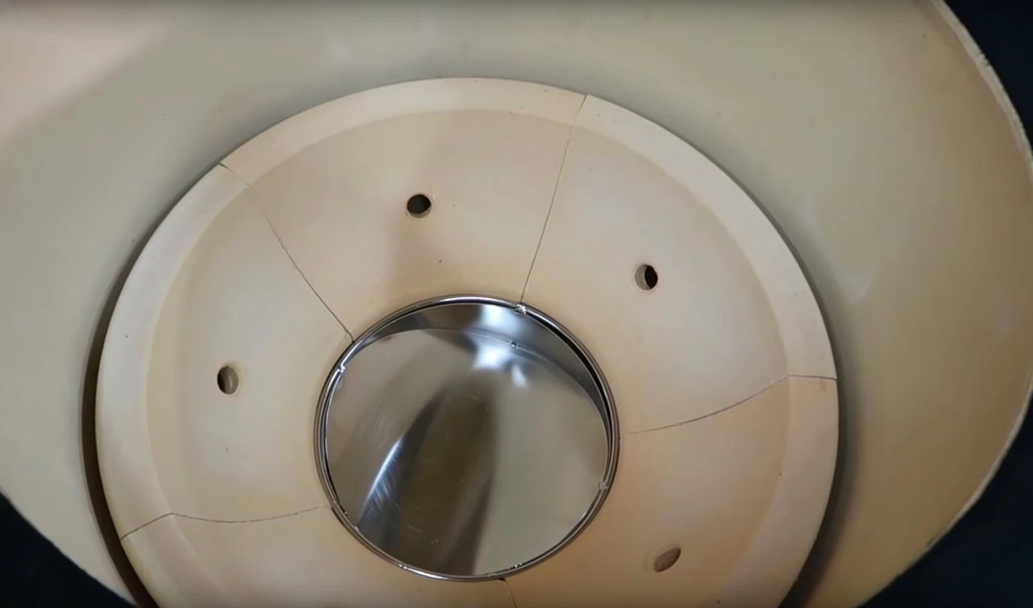 Entre la comida y las brasas, se interpone el deflector de cerámica. Este deflector consta de dos piezas, una parte metálica elevadora y un disco de cerámica (1 disco en los modelos Junior e Icon y 1 disco dividido en 2 medias lunas en los modelos Classic y LeChef) que evita que las llamas asciendan y hace que los alimentos se cocinen por convección y conducción. La comida se coloca sobre la parrilla que queda por encima del deflector.