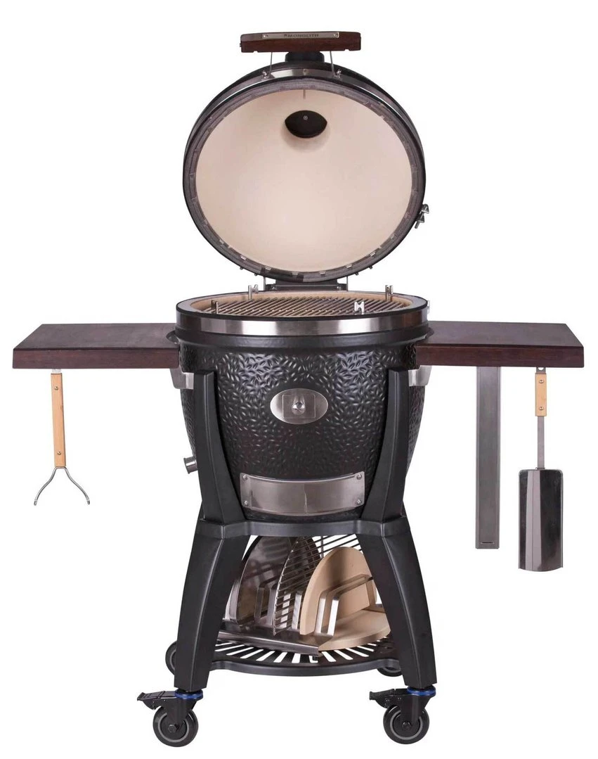 El Monolith Le Chef es el Kamado perfecto para cocinar grandes cantidades de carne o para cocinar a la vez muchos platos diferentes. Es la elección perfecta para todas sus necesidades de cocina como para asar, hornear y ahumar. Extienda la superficie de cocción la parrilla suplementaria de segundo nivel, haciéndola lo suficientemente grande como para cocinar diferentes platos simultáneamente. Dispone de un exclusivo sistema de carga para las astillas de madera, grandes trozos de madera o pellet, le permite insertar las astillas de madera para ahumar directamente sobre las brasas, sin tener que levantar la tapa del Kamado por lo que no tendremos perdida de calor. Además, hay una amplia gama de accesorios opcionales como la parrilla de cocción de hierro fundido, la piedra de pizza, la plancha, el wok y el soporte de wok, todos ellos suman para hacer del Kamado Monolith Le Chef su máquina de cocinar perfecta.