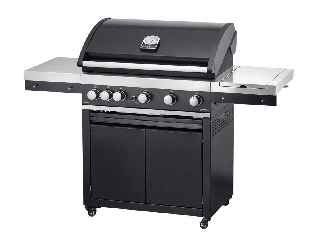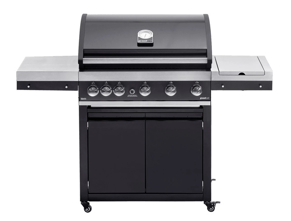 La barbacoa Grandhall Maxim G 5 es perfecta para los amantes de la buena mesa y para los parrilleros más exigentes. Con su excelente construcción, diseño elegante, y buenísima relación calidad/precio, esta barbacoa nos quedara fantástica en cualquier zona de nuestra terraza o jardín. Con un solo toque de un botón, los quemadores se encienden y alcanzarán la temperatura de cocción en cuestión de minutos. Gracias al termómetro que integra en el tapa, usted podrá conseguir las temperaturas perfectas cuando utilice su barbacoa para función de horno para realizar asados, rustideras, pizzas, pescados al horno, etc. También integra un práctico quemador lateral.