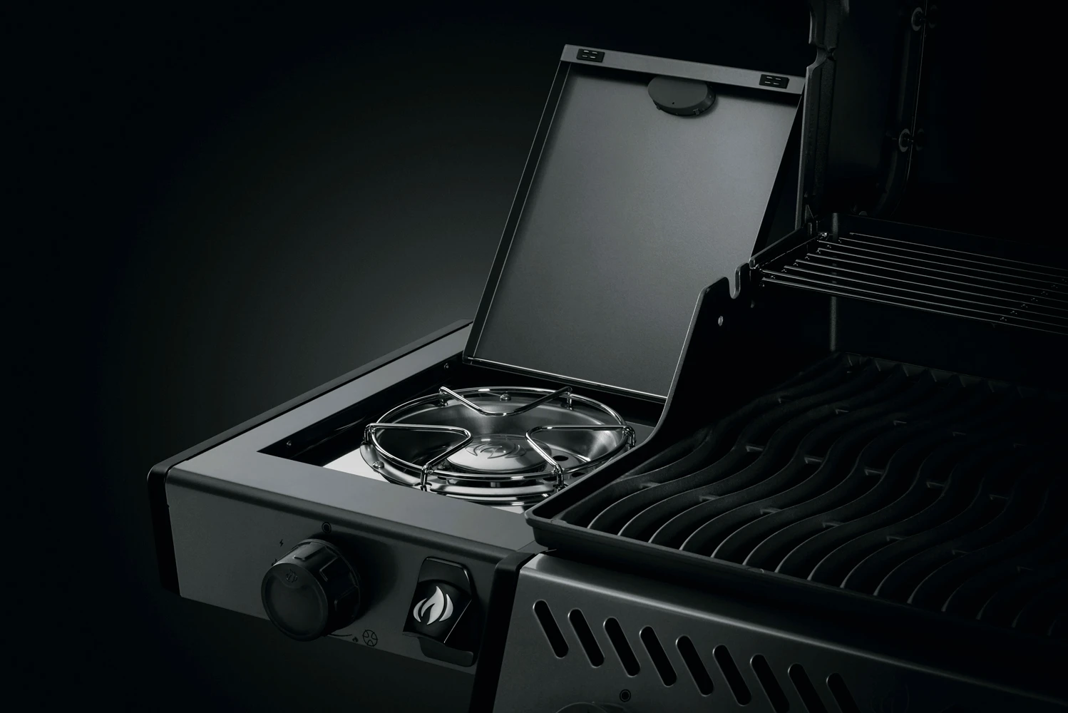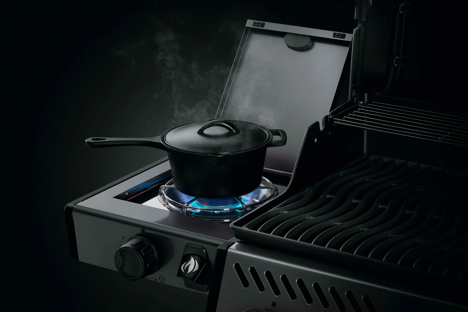 Utilice un quemador lateral tipo horno para mejorar aún más su vida, ya que puede preparar guarniciones y salsas mientras cocina en la parrilla.