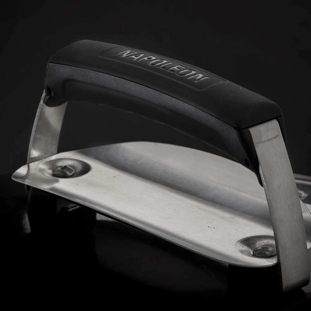 La tapa cuenta con un colgador integrado y un asa de tacto frío para mantener las manos alejadas del calor mientras se asa.