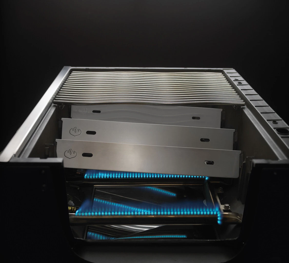 Ase como un profesional. El calor del quemador infrarrojo trasero es perfecto para marcar a fuego alto y asar a fuego lento.