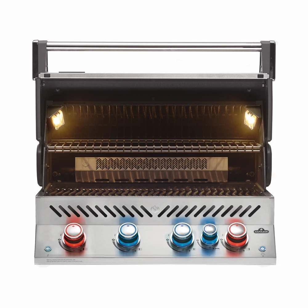 La barbacoa de gas encastrable Prestige Pro 500 de Napoleon cuenta con un quemador trasero de infrarrojos de Acero Inoxidable fabricado con características de alta calidad, proporcionando un alto rendimiento que hace que asar sea fácil e impresionante.