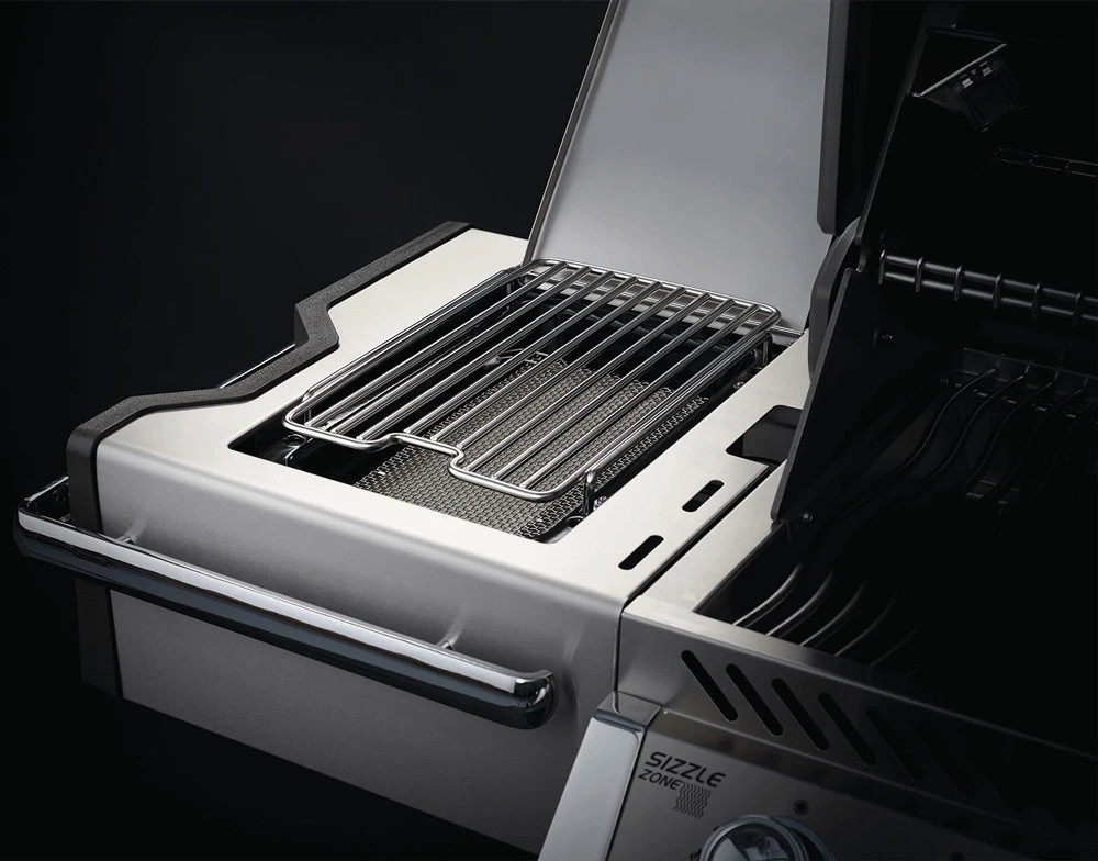 La barbacoa Napoleon Prestige Pro 500 también incluye un quemador infrarrojo lateral cerámico, para una mayor versatilidad de cocción.