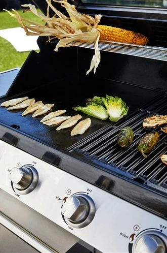– El protector de los quemadores controla las llamas y te hace obtener el máximo sabor: el protector de llama evita que la grasa gotee sobre el quemador. Para un calor uniforme y un sabor máximo que minimiza el riesgo de quemaduras.