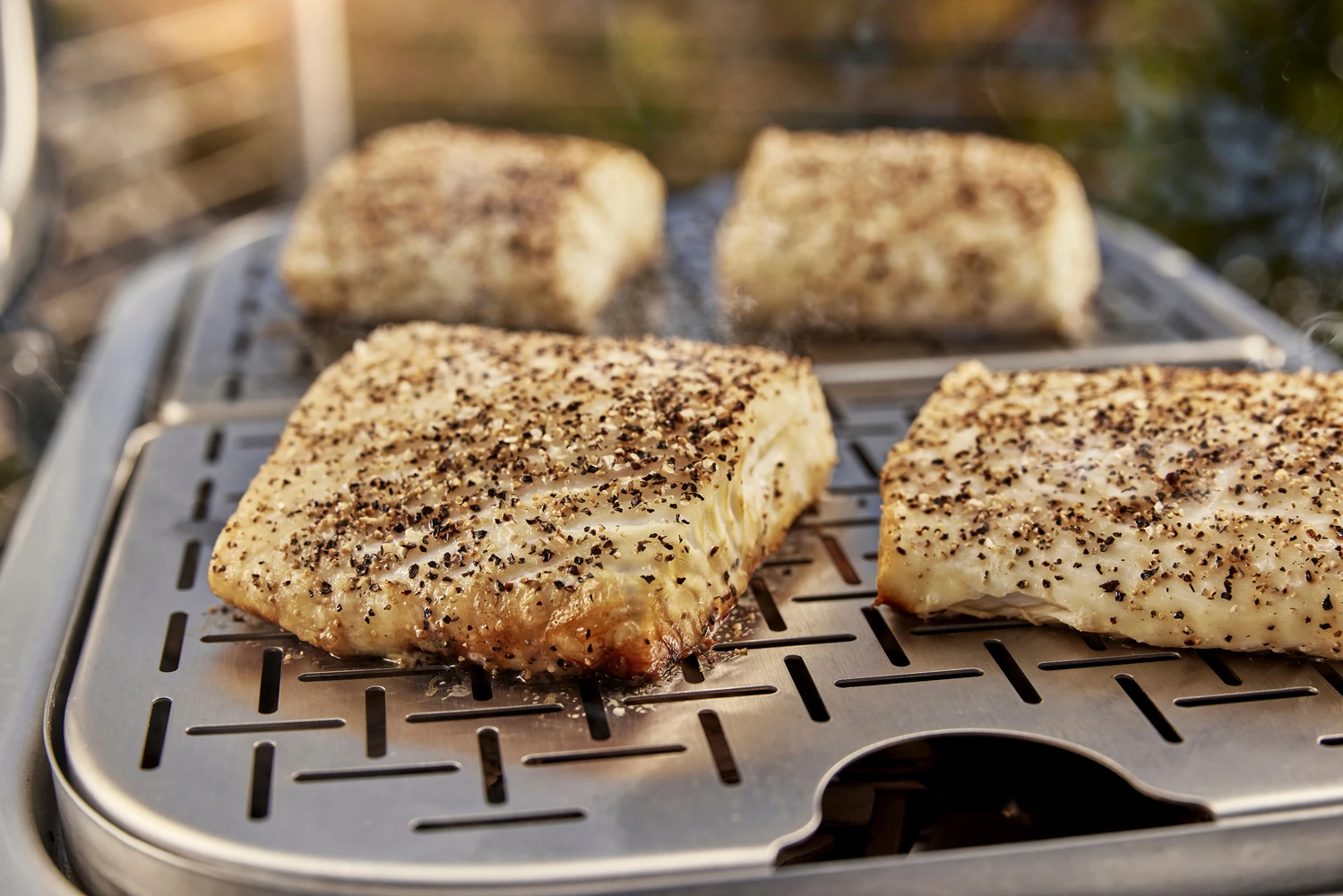 4. Mantenimiento de Calor: Mantén la comida caliente para que tus invitados puedan atenderse a sí mismos en segundos mientras disfrutan de un autoservicio de estilo bufé directamente desde la barbacoa. Solo tienes que colocar una bandeja para el horno en la rejilla de cocción y añadir los alimentos, o también puedes usar el kit multifunción (que se vende por separado).