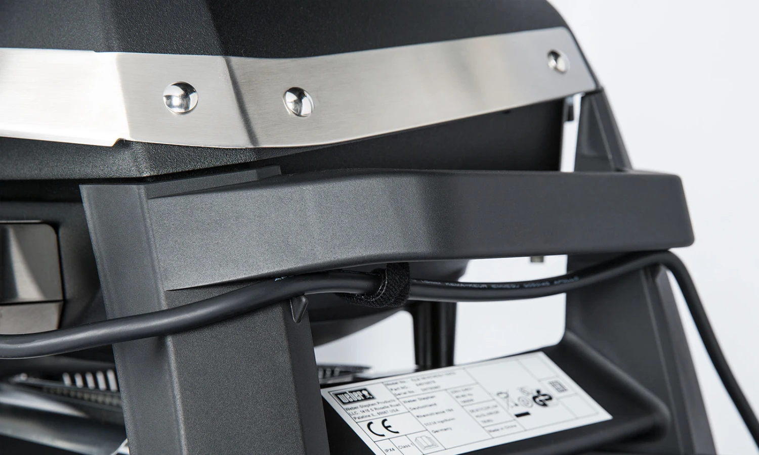 La guía integrada en la pata derecha de la barbacoa permite sujetar el cable fácilmente entre el controlador de temperatura y la parte posterior de la barbacoa.