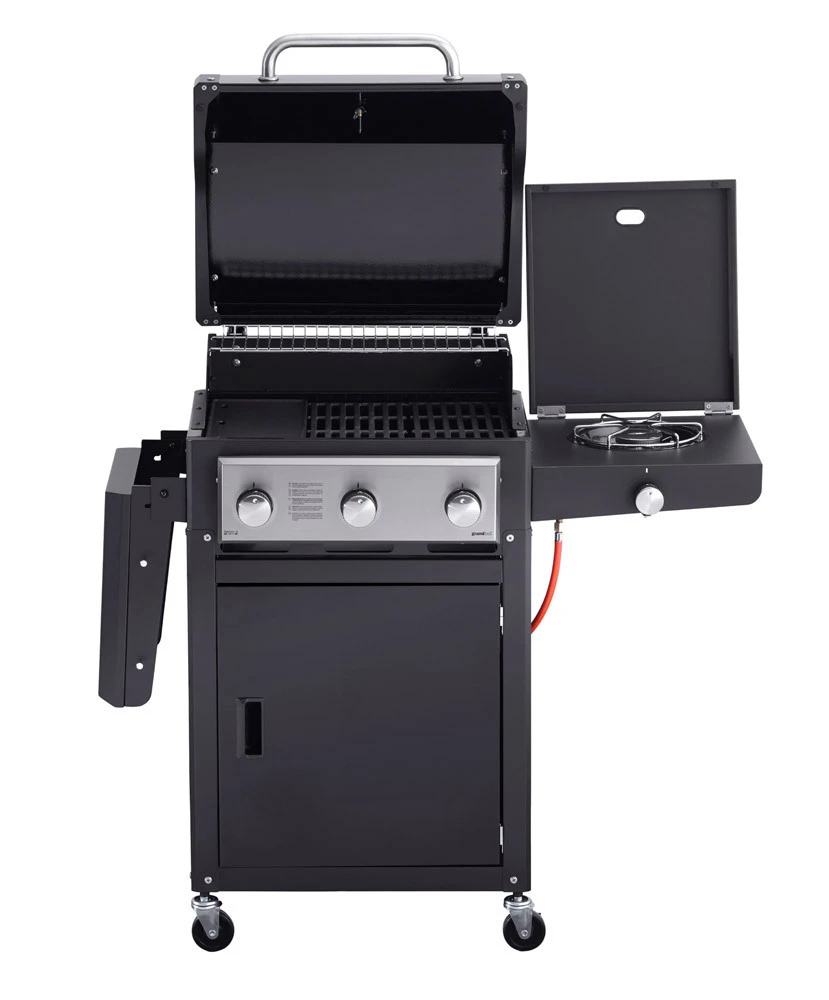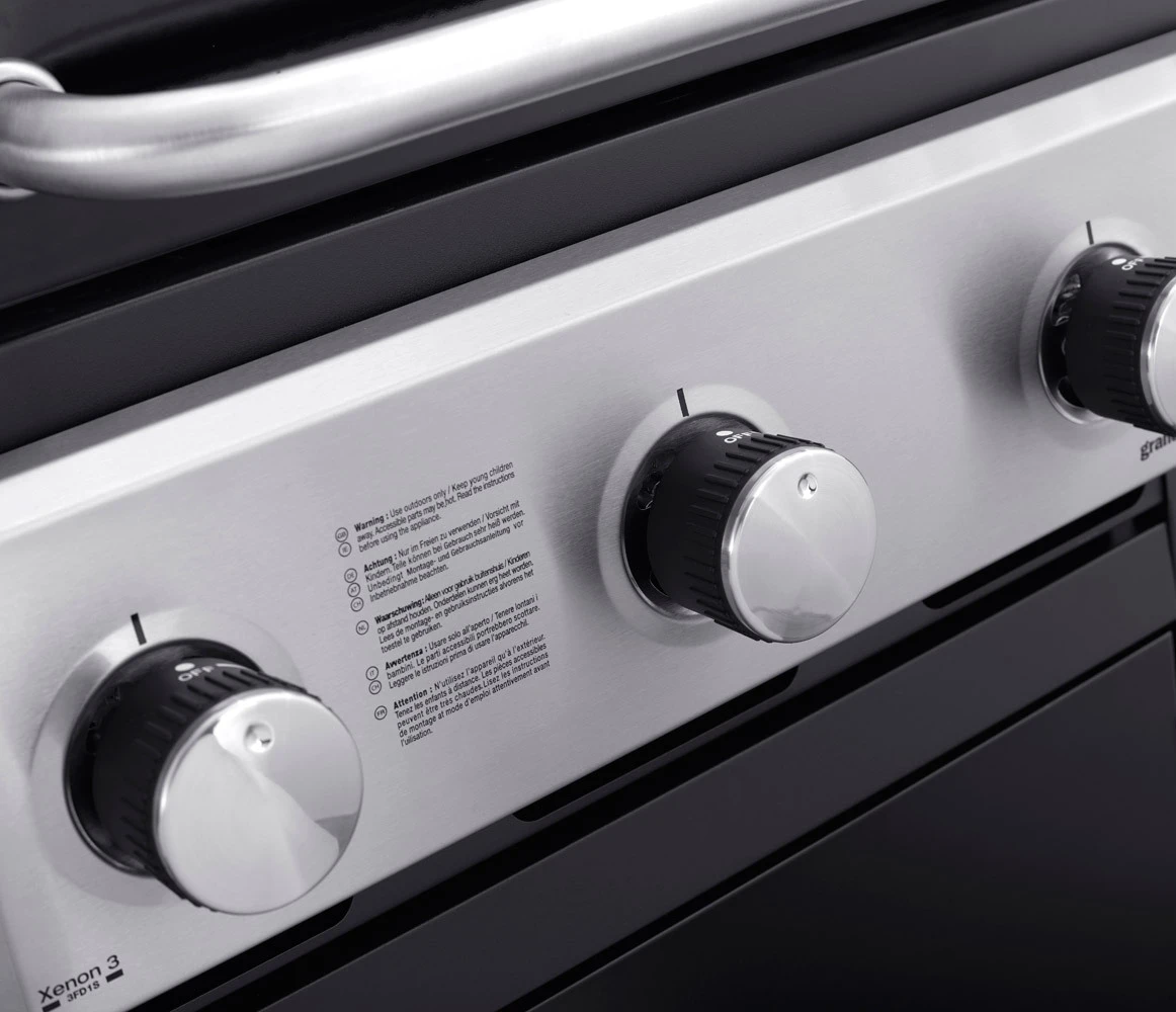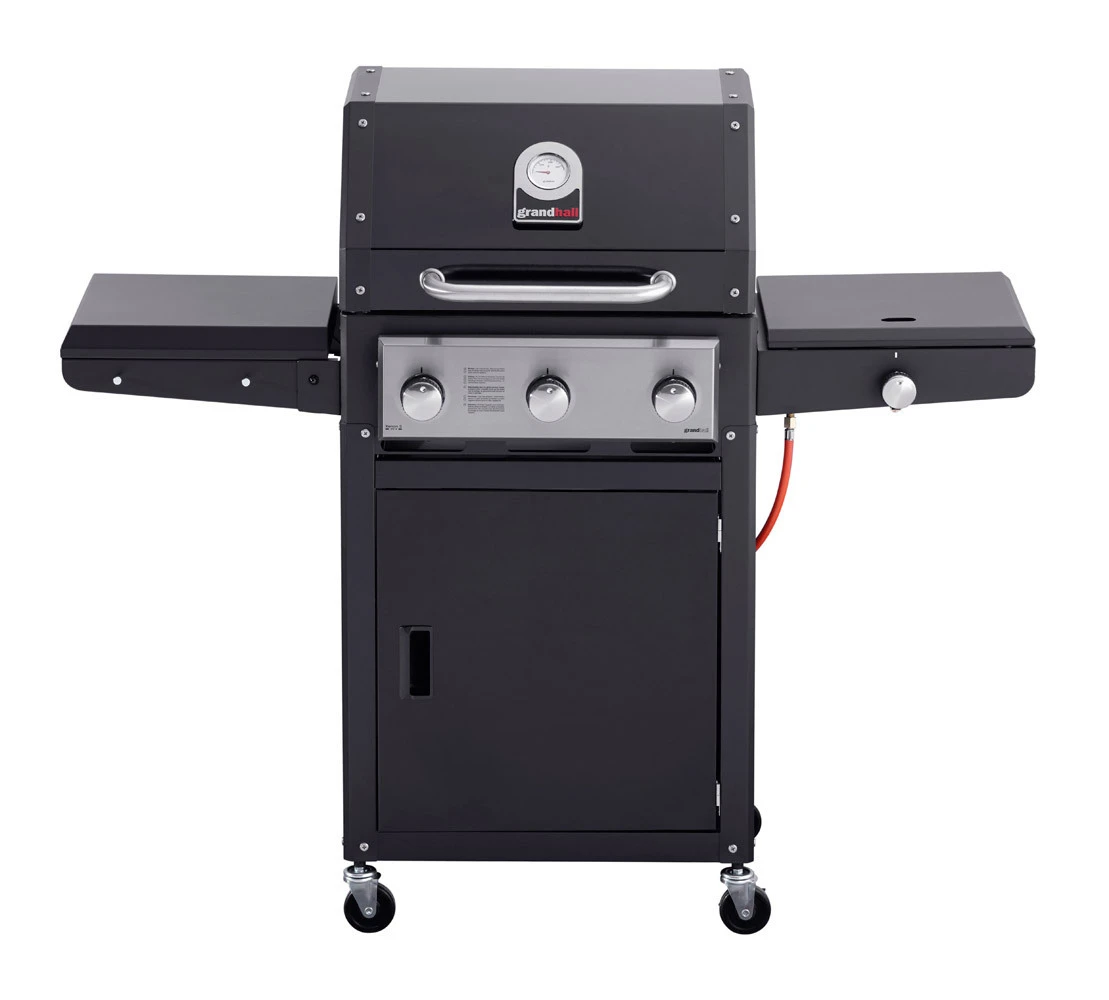 La barbacoa Grandhall Xenon 3 es perfecta para los amantes de la buena mesa y para los parrilleros más exigentes. Con su excelente construcción, diseño elegante, y buenísima relación calidad/precio, esta barbacoa nos quedara fantástica en cualquier zona de nuestra terraza o jardín. Con un solo toque de un botón, los quemadores se encienden y alcanzarán la temperatura de cocción en cuestión de minutos. Gracias al termómetro que integra en el tapa, usted podrá conseguir las temperaturas perfectas cuando utilice su barbacoa para función de horno para realizar asados, rustideras, pizzas, pescados al horno, etc. La mesa lateral izquierda es plegable, lo que hace que sea ideal para usar la barbacoa en espacios pequeños y también a la hora de guardarla.